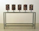 Vingt toiles abstraites, toutes réalisées depuis 2007, toutes de format figure (162 x 130 cm), et presque toutes sans titre, entoureront un triptyque intitulé Nymphéas. Un ensemble d'objets esthétiques qui sollicite d'emblée la réflexion, notamment parce qu'il constitue un signe à première vue abstrait, sous le format de la peinture dite de chevalet, en un temps où, sauf exception, ce mode d'expression n'est guère apprécié par les institutions. |